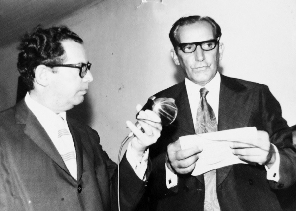 Imagem do radialista Nilsomar Tavares e do ex-prefeito Eduardo Elias, que governou Imbituba de 1973 a 1977.