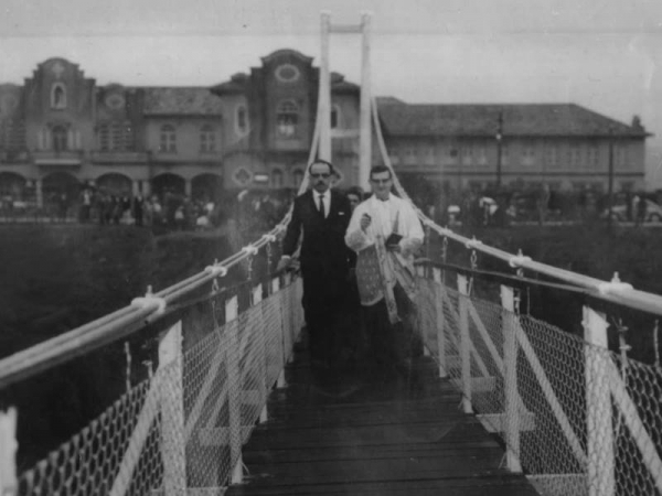 Inauguração da ponte pênsil, em frente à Unisul, em 1960.