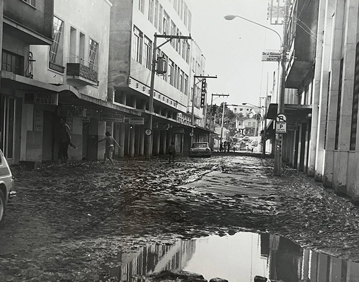 Lama após a enchente de 74 na rua onde hoje fica o Calçadão de Tubarão
