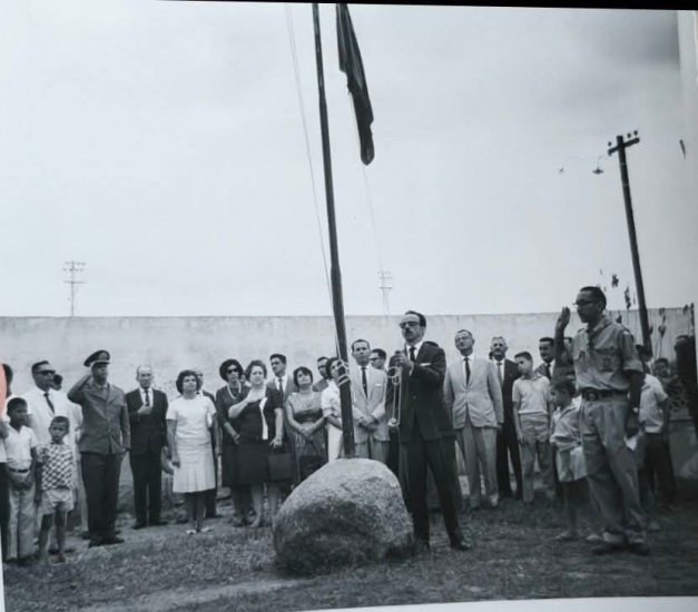 O então prefeito de Tubarão Dilney Chaves Cabral em um lançamento de pedra fundamental em Capivari de Baixo (na época bairro), em 1960.