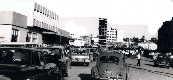 Inauguração do Mercado Público de Tubarão, e das novas instalações da prefeitura municipal. Ao fundo, o então Edifício Quarezimim, em construção. A foto é de 1965.