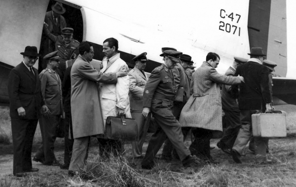 Chegada do ministro da Guerra em Tubarão de avião. Data desconhecida.