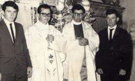 Primeira missa do padre João Leonir Dal’Alba, em 1967, com os irmãos Jorge, padre Honorino e Antônio.