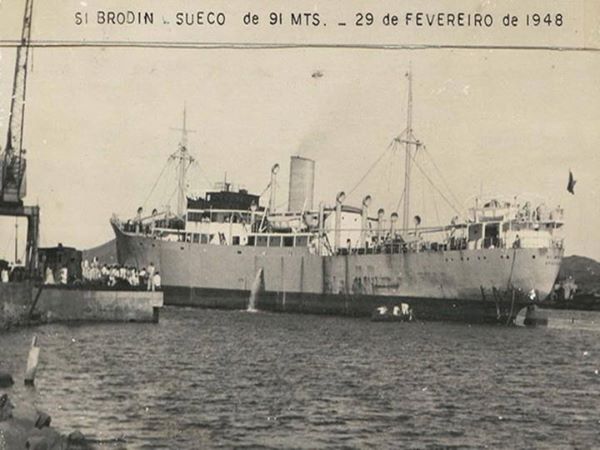 Navio Sueco “Si Brodin” em Laguna, no dia 29 de fevereiro de 1948. Este foi o maior navio europeu a atracar no porto da cidade.