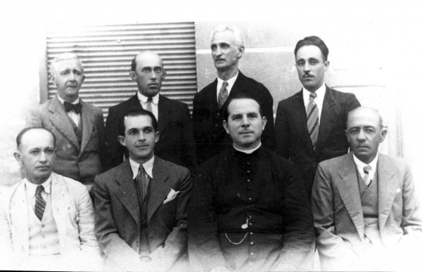 Nomes importantes de Tubarão, vistos hoje em dia em ruas e pontes: Luiz Martins Collaço, Rubens Faraco, José Nicolau de Carvalho, Manoel Aguiar (de pé); Severiano A. Corrêa, Edgar Lima Pedreiras, Padre José Poggel, Marcolino Martins Cabral.
