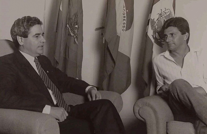 O então prefeito de Tubarão Estêner Soratto e o deputado Julio Garcia, no paço municipal, em 1990.