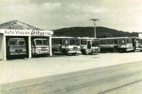 Garagem e manutenção de ônibus na década de 70, em Laguna.