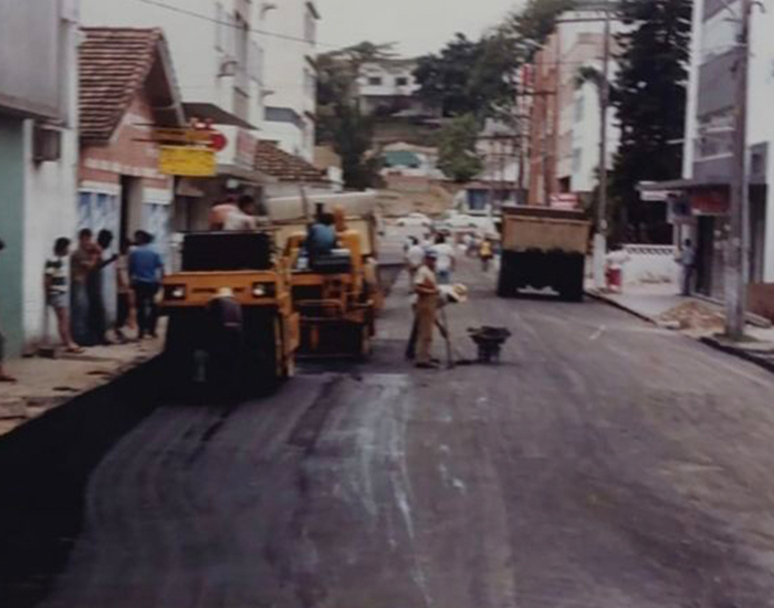 Pavimentação da Rua Esteves Júnior, no Centro de Tubarão, em 1980.
