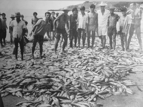 Pesca da tainha na praia da Garopaba, na década de 50.