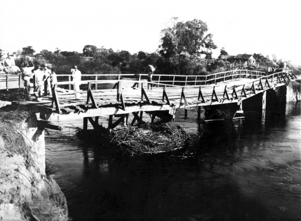 Ponte entre Tubarão e Capivari de Baixo após enchente em 1948.