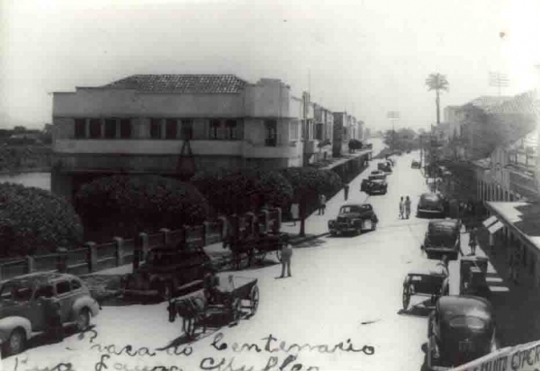 Praça Centenário, na rua Lauro Müller, no Centro de Tubarão, na década de 50.