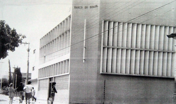 Prédio do Banco do Brasil, na rua Lauro Müller, em Tubarão, no ano de 1974. O mesmo imóvel foi usado depois pelo Besc.
