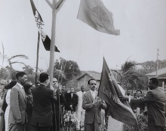 Prefeito Dilney Chaves Cabral hasteando a bandeira da Lira Tubaronense.