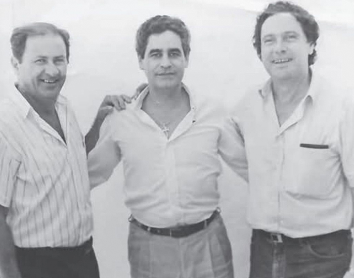 Prefeitos Hilário Nandi, de Jaguaruna, Estêner Soratto, de Tubarão, e Nelson Abrahão Neto, de Laguna, em 1990. Imagem: Jornal da Cidade.