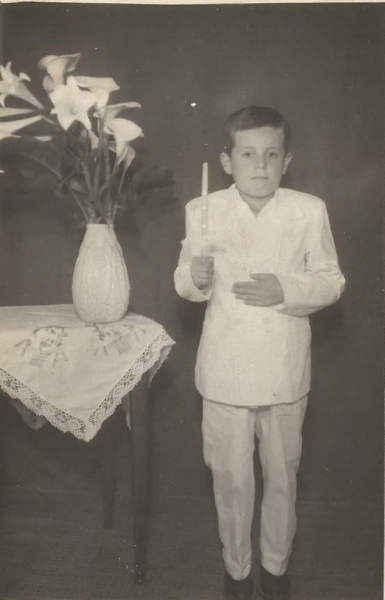 Primeira comunhão de Gelázio Della Giustina, em 27 de outubro de 1957, na Paróquia Nosso Senhor do Bonfim, em Braço do Norte.