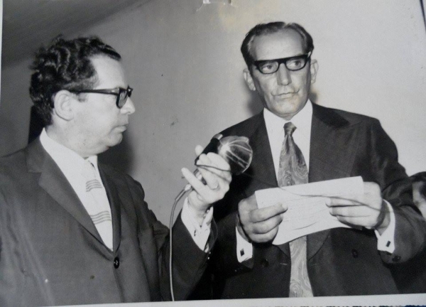 Radialista Nilsomar Tavares e o prefeito de Imbituba entre 1973 e 1977, Eduardo Elias.