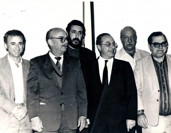 Recepção ao deputado paulista Paulo Salim Maluf, tendo à sua direita o prefeito Paulo Osny May, os vereadores César Damiani e Édson Peixer de Carvalho.