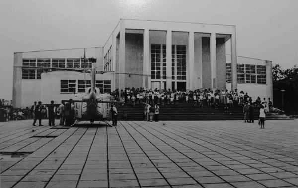 Ainda sobre os 44 anos da enchente de 1974, imagem do helicóptero nas escadarias da Catedral, no resgate dos tubaronenses.