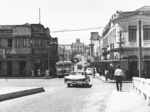 Início da rua Coronel Collaço, com Catedral de Tubarão de fundo, em 1965.