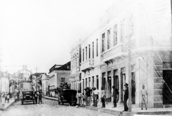 Rua Coronel Collaço, no Centro de Tubarão, com a igreja de fundo, em 1935, aproximadamente.