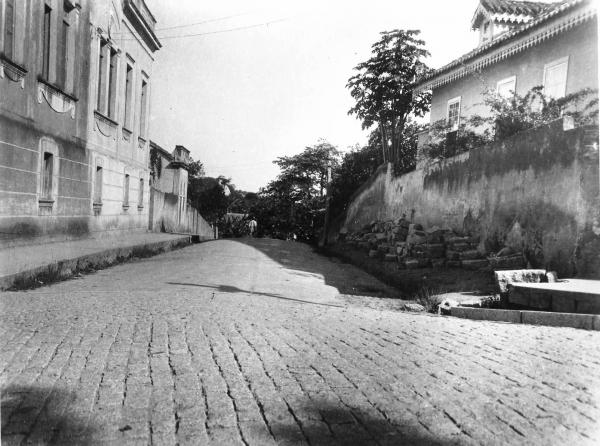 Rua Coronel Teixeira, que liga as ruas Coronel Cabral e São José, no Centro de Tubarão, em 1930.