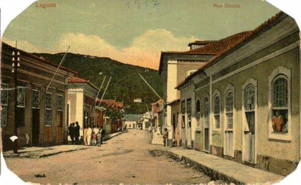 Rua Raulino Horn, em Laguna, no ano de 1917. Cidade completa hoje 340 anos de fundação.