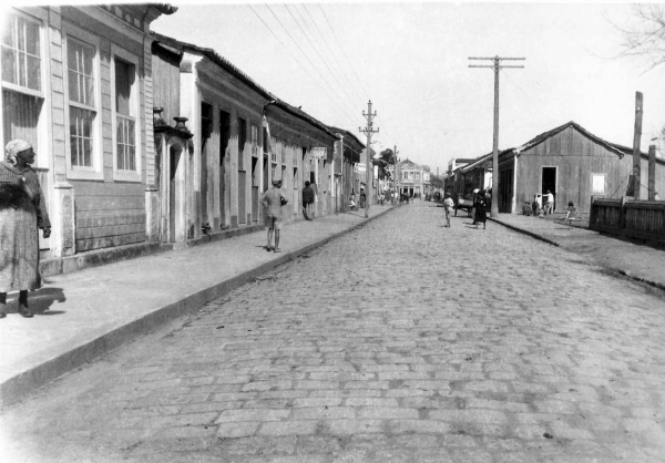 Rua Lauro Müller na esquina com a Esteves Júnior, em Tubarão, no ano de 1935.