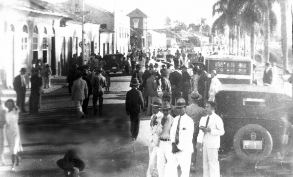 Início da rua Marechal Deodoro, logo na saída da ponte, no Centro de Tubarão, em 1950.