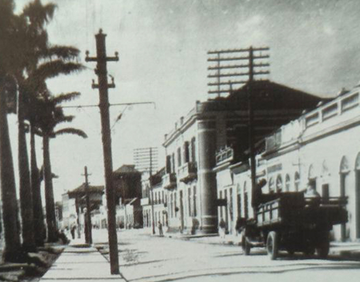 Rua que depois se tornaria a Avenida Engenheiro Colombo Machado Salles, em Laguna, no ano de 1940.