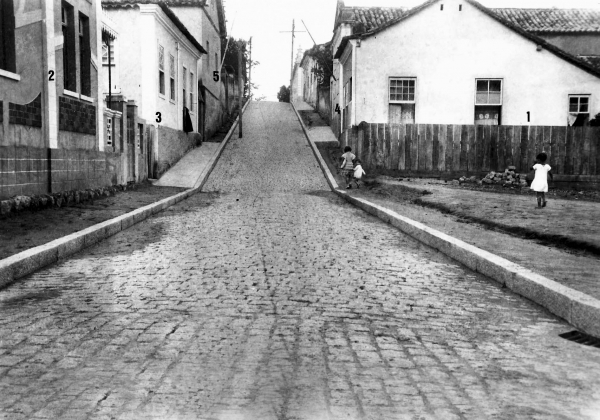 RUA SÃO JOSÉ, sentido Centro-Oficinas, na esquina com rua 27 de Maio, subindo em direção à Ferreira Lima. Na imagem aparecem as casas de Ari Freitas, Manoel Brígido Costa e Jospe Nicolau Carvalho. Na rua ainda estavam a primeira sede do Clube 29 e do Clube Minerva, em 1933.