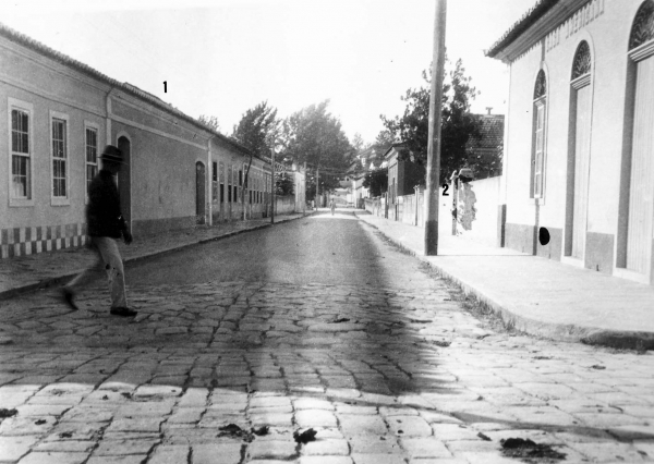 Rua São Manoel, beira-rio, sentido aos trilhos, em Tubarão, no ano de 1933.