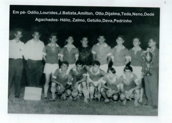 Jogadores do Sul América F.C., do bairro Morrotes, anos 60. De pé: Odílio, Lourides, J. Batista, Amilton, Otto, Djalma, Teda, Neno e Dedé. Agachados: Hélio, Zalmo, Getúlio, Deva e Pedrinho.