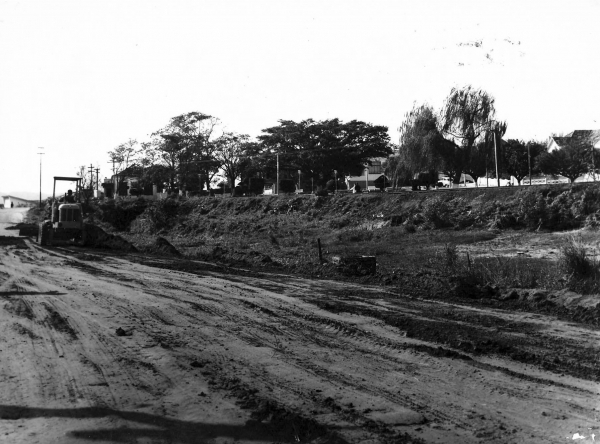 Terraplanagem da avenida Marcolino Martins Cabral, em preparação para a retirada dos trilhos à direita, em 1970.