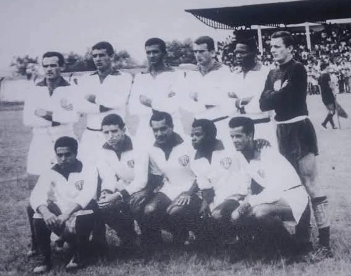 Time do Hercílio Luz, de 1965. Elemar, Pedrinho, Parafuso, Luiz Carkis, Badico e Raul. Márcio, Ivan, Rudimar, Baliza e Gonzaga.