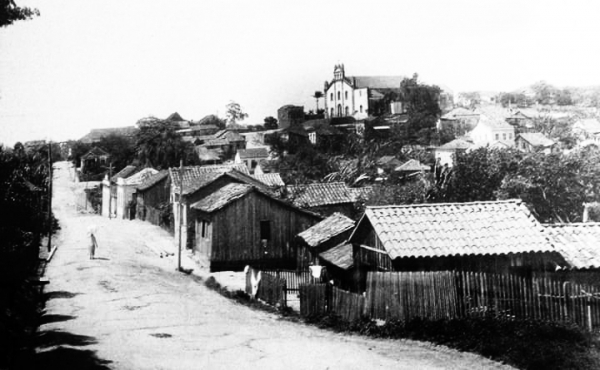 Tubarão, 1932. Rua São José. A catedral ainda dominava o visual. Foto enviada por um leitor do DS.