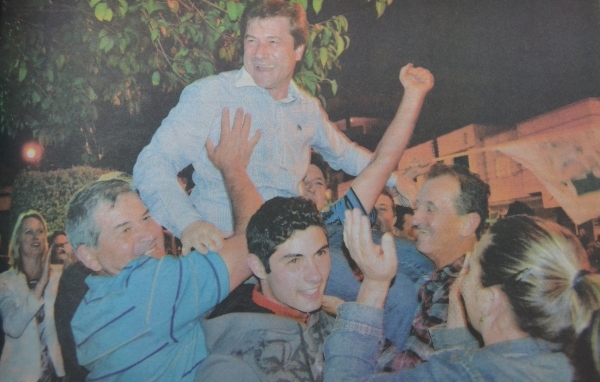 ÚNICO candidato da região eleito em 2014, José Nei Ascari (PSD), comemora a vitória, em foto que foi capa no DS. Ele cumpriu mandato de deputado estadual até o ano passado, quando foi indicado a conselheiro do Tribunal de Contas do Estado.