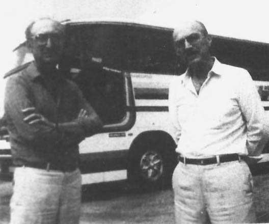 Zelindro e Arnor Damiani à frente de um ônibus da empresa Santo Anjo da Guarda.