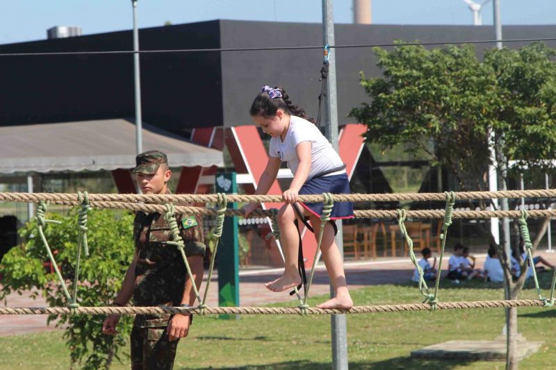 O terceiro dia da Colônia Kids do Parque Ambiental Encantos do Sul contou com a participação do Exército Brasileiro (3ª Cia/28º BI) de Tubarão. A ação aconteceu ontem, em Capivari de Baixo, e contou com a colaboração dos militares, já que as atividades demandavam equipamentos especiais, atenção, concentração e força.