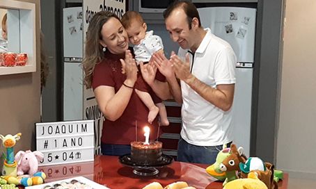 “Compramos tudo, colocamos os bichinhos de pelúcia como convidados, roupinha de festa no Joaquim, tudo que ele tinha direito. E quando todos estavam conectados, cantamos os parabéns on-line com todos participando. A gente foi explicando tudo isso pra ele, que todos estavam ligando, querendo participar, que todos estavam juntos apesar de só estarmos nós três em casa. Deu bastante trabalho, mas valeu a pena. Ficamos felizes em reunir as pessoas que queríamos nesta data tão especial. O resultado é que na hora dos parabéns todos estavam juntos como sonhamos que ia ser no dia da festa”, comemora.