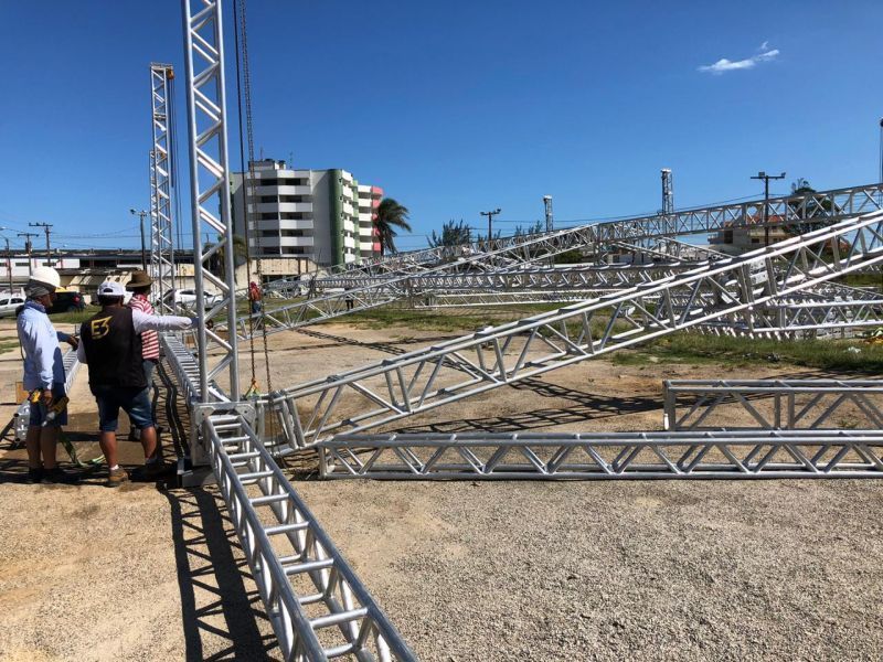 A empresa responsável pela estrutura do Festival Nacional do Camarão iniciou a montagem do espaço nesta semana. Segundo a organização do evento, a área da festa será ainda melhor do que nas últimas edições. A perspectiva é de que tudo fique pronto até a próxima segunda-feira.