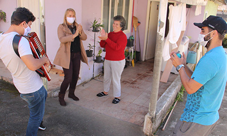 De máscaras e distanciamento, sem deixar de lado o violão e o tradicional parabéns, o grupo iniciou visitas aos idosos que estivessem comemorando mais um ano de vida. Com violão, os aniversariantes foram presenteados com a comemoração especial.