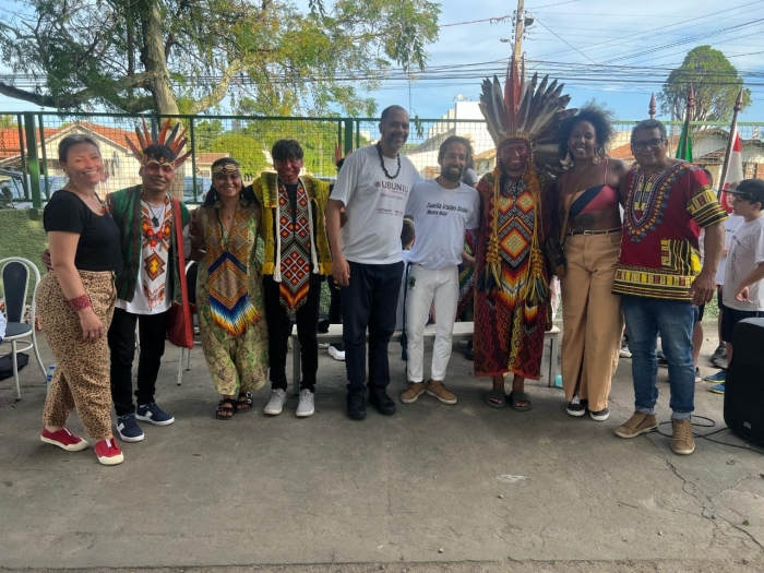 Como abertura oficial do Projeto Educação para as Relações Étnico-raciais, os alunos da EEB Professor Arno Hübbe, de Tubarão, contaram com a presença do líder espiritual Mapu Huni Kuin, representante do povo Huni Kuin, etnia originária do Acre.