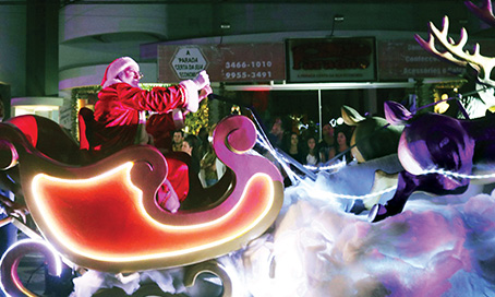 Um sonho de magia natalina. Assim se resume o espetáculo pelas ruas de Orleans, no fim de semana. Com anjos voando na praça, Papai Noel desfilando num carro gigante puxado por renas, neve cheirosa e branquinha, o evento atraiu cerca de dez mil pessoas para a rua.
