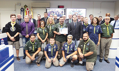 O presidente do 9º Grupo Escoteiro Tubarão, Marcos Fortunato, esteve na Câmara de Vereadores na segunda-feira. “Nossa intenção é fazer uma aproximação com as instituições do município, e aproveitamos a sessão da Câmara para abrir este espaço. Valeu a pena, os vereadores foram muito receptivos, e ficou claro o que nós fazemos e como atua o Grupo Escoteiro Tubarão, que hoje conta com 115 integrantes, entre crianças, jovens e adultos”, explica.