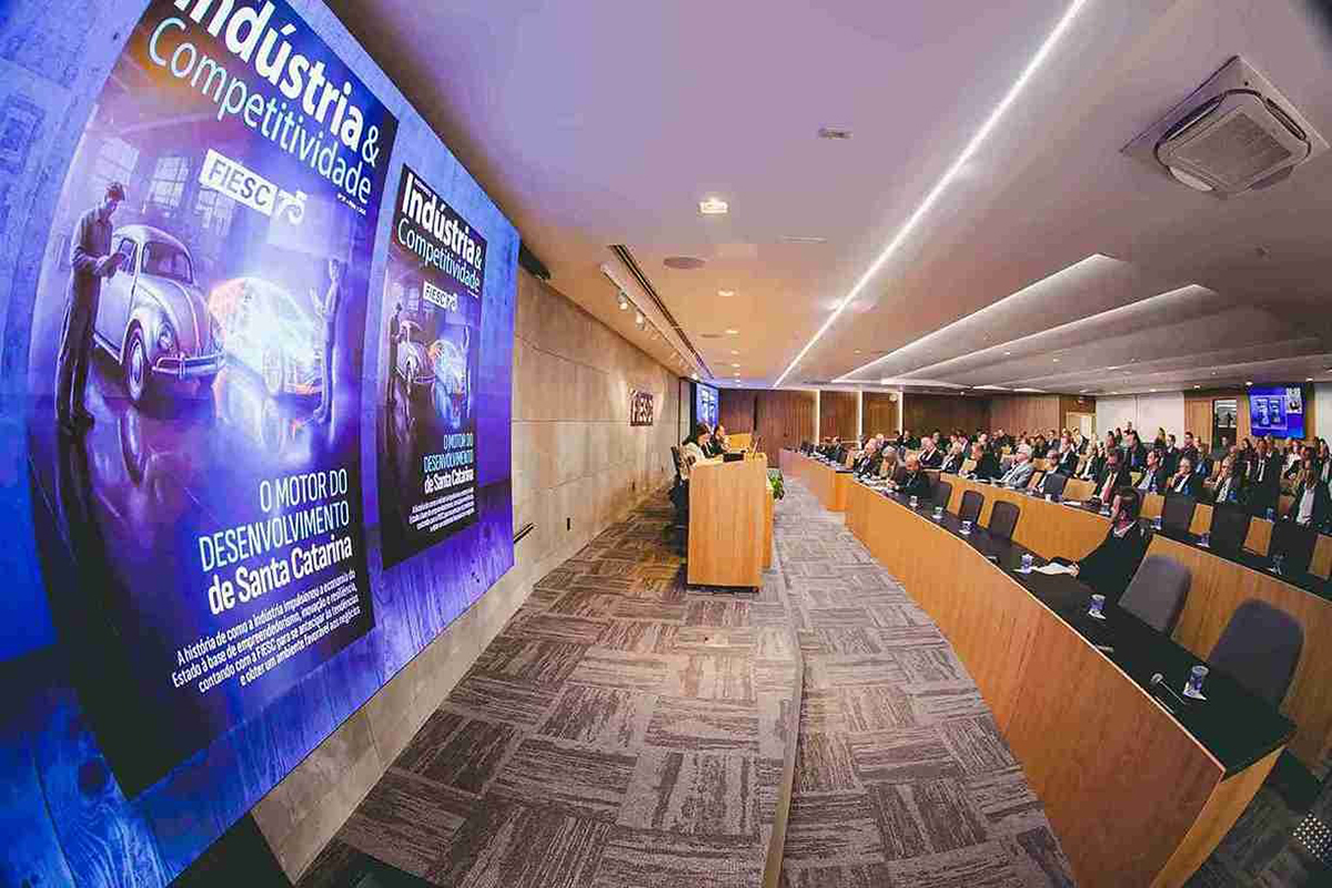 “Somos uma indústria resiliente e com visão de longo prazo. Por isso, podemos dizer com orgulho que nossa matéria-prima é o futuro. A celebração dos 75 anos da Fiesc homenageia o setor que é o motor do desenvolvimento do estado”, afirmou o presidente Mario Cezar de Aguiar, durante evento comemorativo.
